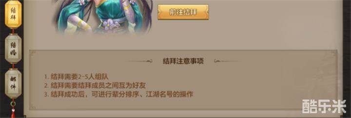 如果少侠的结拜团友五人中有四人都是妹子的情况下,那么恭喜你,不用主动了,等着被撩就好。如果只有一个妹子,从而出现“狼多肉少”的局面,那么少侠你可要抓紧主动出击了。多带队,有更多的时间可以和妹子谈心聊天,从而拉近两人距离。一定要表现的比你的结拜兄弟更热心,更真诚,有十分力气使十二分力气,争取让妹子认为你是兄弟结拜中最可靠的一个人。