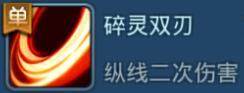 碎灵双刃——进阶之后飞剑飞回对目标再次造成伤害!!!这个进阶必须有!!伤害高不说,还能减防御和法术攻击(注意是法术攻击!!!砍的时候看清楚人来砍好吗!!!)一来一回打中四个人的话。大概能造成3万多的伤害。相当给力!狂剑必备!走过路过千万不要错过!!