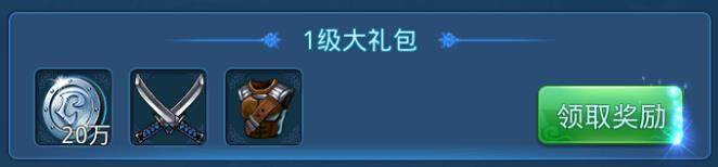 一级礼包:20万银币、1级对应职业武器、1级全套装备