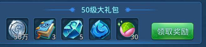 五十级礼包:50万银币、冒险笔记3个、强化石5个、月亮符石1个、星辰精华30个