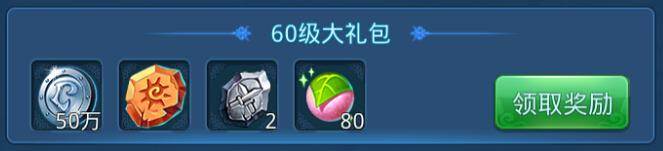 六十级礼包:50万银币、太阳符石1个、60级饰品魂1个、星辰精华80个