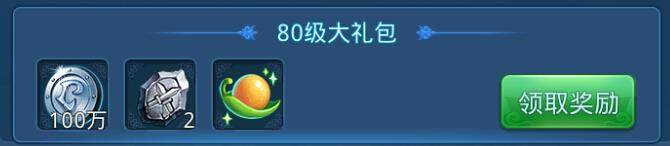 八十级礼包:100万银币、80级饰品魂2个、资质丸1个