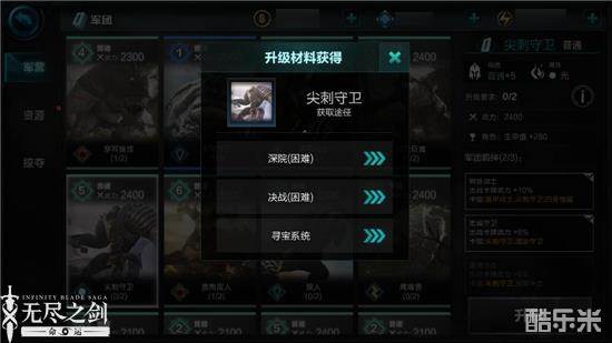在《无尽之剑:命运》中,不同军团卡牌在获取途径上会有一定区别,除了常规寻宝系统产出外,还可以通过副本、商店等获取。尖刺守卫就是可在副本内通关掉落的存在之一,掉落副本有困难难度第六章BOSS本6.4“深院”和困难难度第十四章BOSS本14.5“决战”,推荐挑战等级分别是33级和63级。