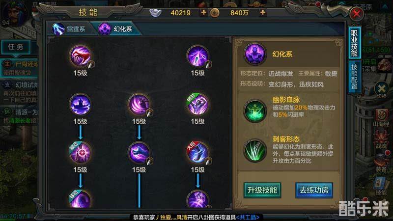 幽影血脉:被动增加20%物理攻击力和5%闪避率