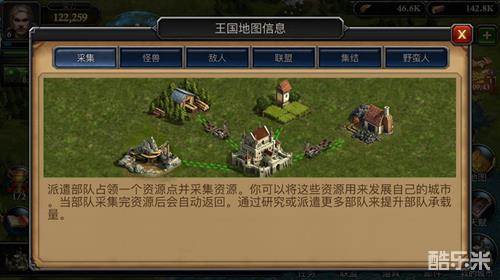 在王国地图上,你可以派遣部队占领资源点并采集资源。採集到的资源可用于城市的发展。采集方法:选择一个资源点然后点击‘占领’。选择你要派遣的部队然后点击“行军“。当资源采集量达到部队载重量上限时,部队将会自动返回城市。