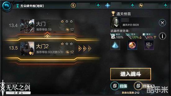 《无尽之剑:命运》中,地狱难度关卡自然是最考验操作技巧的关卡,只不过地狱第13章BOSS本中的BOSS钢铁屠夫,攻击速度不够快,留给勇士的反应时间还是比较充足的。
