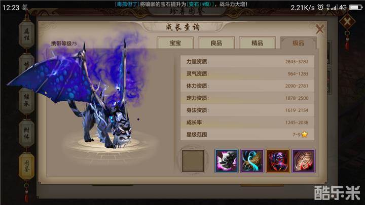 2、选择外攻型宝宝就应该暴力一点技能选择方面可以选择连击、猛击、蛮力、破绽和极冰凝杀。