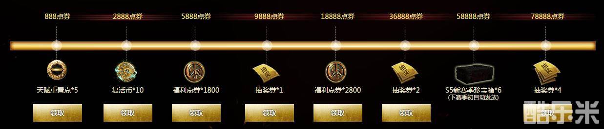 赛季期间,累计充值达到一定额度即可获得返利,限定画册:流放之路,QQ超级会员,复活币,新赛季时装宝箱:天启,游戏点券,感恩有你,慷慨回馈!