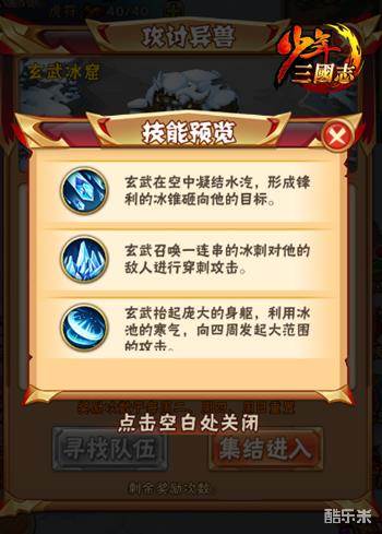 作为融合了小队副本与策略类游戏元素的全新GVE玩法,“冰原异兽”开启了《少年三国志》全对战模式。在该玩法中,异兽BOSS不再是“简单无脑”的卡牌数值,它将拥有多种形态变化和技能大招。玩家在集结对抗BOSS的过程中,“站桩”输出的简单操作将不适用。