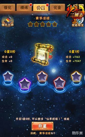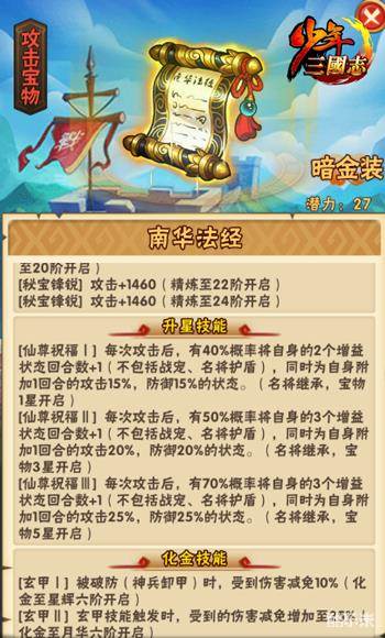 宝物升星可激活“仙尊祝福”技能
