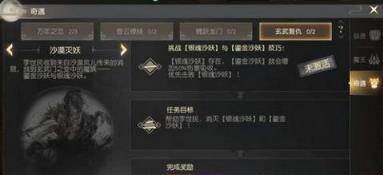 玄武复仇奇遇任务分为两章:沙漠灭妖和通天镇魔