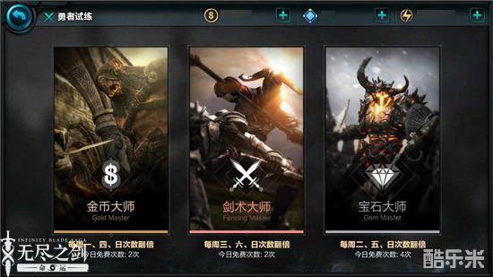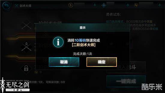 《无尽之剑:命运》剑术大师,战斗过程中需要把能用到的技巧全部计算进去,才有可能最快时间打爆BOSS,拿到最多的奖励。当然除了技巧之外,还有最无脑的一键完成,直接百分百拿最多奖励,当然代价自然是要付出一定的筹码。