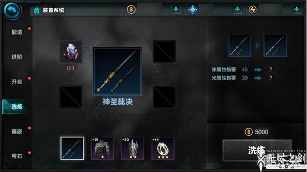 《无尽之剑:命运》中的装备洗炼功能,在现阶段可以查看却无法体验,主要原因就是装备洗炼材料获取途径尚未开放,但这项装备养成功能必定会是今后强者成长的一条途径!