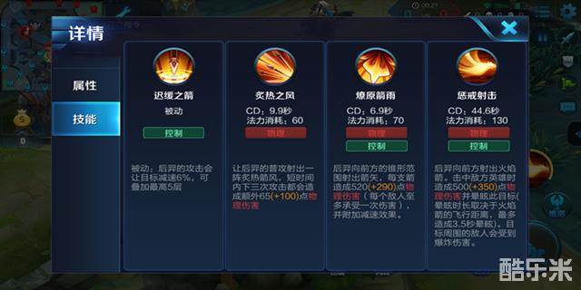 后羿的普通攻击会对敌人造成减速,并且可以叠加移速减缓程度,至多为30%,此被动使后羿有着优秀的风筝能力,只要和敌人把控好距离,就能达到“我能打到你你却摸不到我”的完美效果。