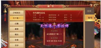 当玩家们在游戏中完成一些比较特殊的成就之后,就可以获得狂霸酷炫的游戏专属称号。比如在决战沙城活动中获胜行会的会长即可获得沙城城主称号,称号不仅可以显示在游戏画面中,还能提升玩家大量游戏属性。