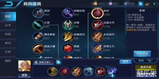 2.末世是后羿的核心装备,增加攻击力、攻速和物理吸血,末世的被动可以使后羿的普攻打出更高的伤害。