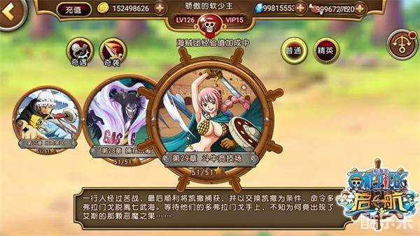 在《ONE PIECE》中巴尔托洛梅奥是一个令人印象深刻的角色,他绝对可以称之为路飞的“脑残粉”了。他在游戏中的定位主要为前排物理肉盾,但从角色技能来看,巴尔托洛梅奥在辅助、控制等方面也有不俗表现。新版本更新福利多多,巴尔托洛梅奥通过免费渠道即可获得,非常良心哦!