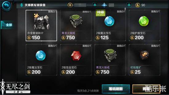虐对手而不是被虐这个很重要,因此战力一定要给力,这就需要精兵作战全副武装啦。天梯赛军需装备每天9点、21点刷新,限购一件的合金套装碎片、青龙火银戒、各类宝石、魔矿等等,如有需要一定卡在时间点上下手速抢,因为锻造、升星、宝石升级、套装等等都离不开材料的支持,该出手时就出手啊。