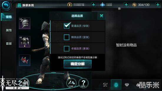 装备分解:对于用不着的、低于等级的空闲装备或是鸡肋之类的装备呢,那就果断分解吧,根据分解的品质的不同,还可以得到熟练度、金币和锻造材料。点击一键分解需要注意绿装、蓝装、紫装的勾选,以免不小心手残。