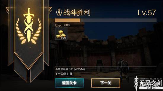 在《无尽之剑:命运》不死远征第10层中,BOSS被击杀后进入结算界面,结算时必定可获得常规奖励经验与金币。另外,结算时可能会掉落产出升阶石,升阶石品质与玩家角色等级有关系,等级越高,产出的升阶石品质越高!