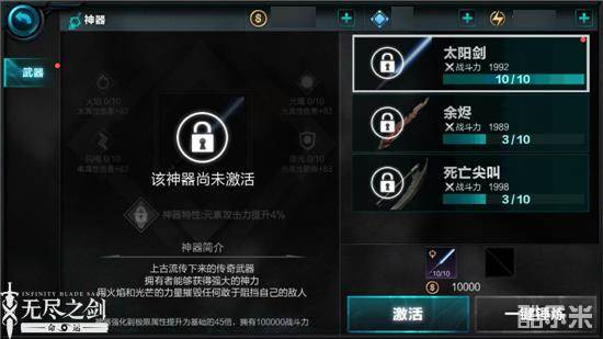 《无尽之剑命运》三大神器降临 激活神器享战力加成