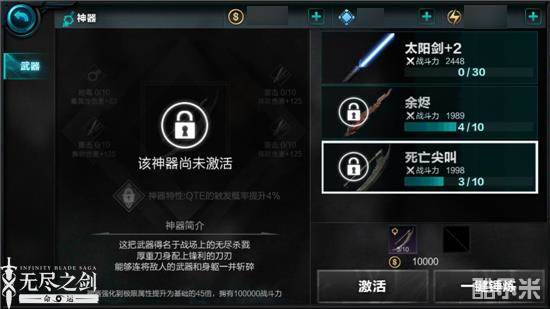 《无尽之剑:命运》近日版本更新,全新神器系统降临。在神器系统中,现阶段一共推出了三大神器,分别是太阳剑、余烬和死亡尖叫,那么神器如何激活,又有什么样的作用呢?这里就为大家进行一下基础解析。