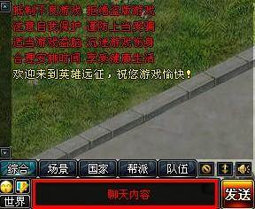 在《英雄远征》聊天框里面输入内容,然后按回车,或点击“发送”,可进行发言(图1)。