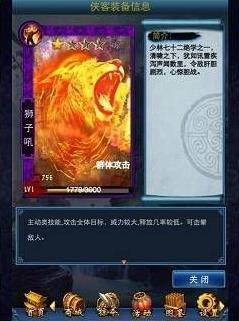 当侠客方证大师装备上狮子吼时,内力将提升40%。