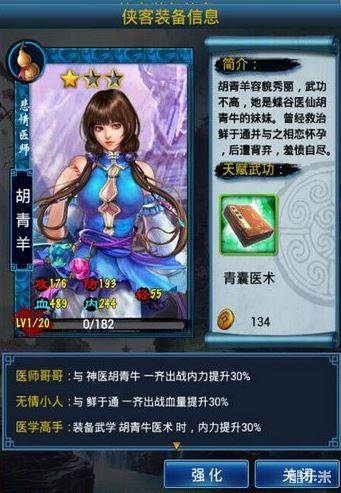 医学高手:装备武学胡青牛医术时,内力提升30%