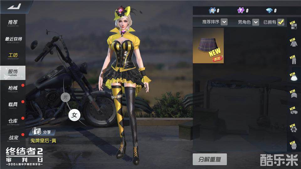 如果你还想进一步展现个性,那不妨让时装来帮助你!此次更新中,《终结者2:审判日》上新三套时装,都十分具有特点。如猎魔牛仔套装,从上到下的皮衣皮裤范,令角色更为干练有力,整体风格还颇有几分蝙蝠侠和怪盗基德的气质,在战场上一定能助你取得更好成绩。虎嗅芳华时装则偏向文艺范,文青吃鸡肯定能让对手们措手不及。而作为重头戏的鬼牌皇后系列套装拥有多达四种配色,足以满足每个玩家的需求。