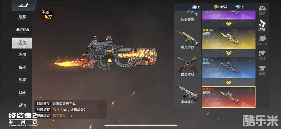 个性的装扮不仅限于衣着,《终结者2:审判日》还上线了全新枪械皮肤骇龙,骇龙皮肤为P90量身定制,并且可升级为极致酷炫的暗炎骇龙皮肤。