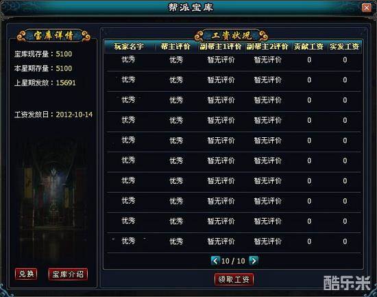 2)帮派成员实际能领取的工资跟成员的贡献及帮主和副帮主的评价相关,成员领取的工资即为帮派财富;