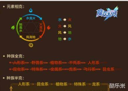 在魔力的世界里,玩家的角色默认为人形系,而宠物则有各自对应的九种种族,不同种族之间互相克制,分为全克和半克。下图详细的展示了《魔力宝贝手机版》中宠物种族之间的克制关系。利用好下图中的属性相克和种族相克,能让你在战斗中得心应手,所向披靡。