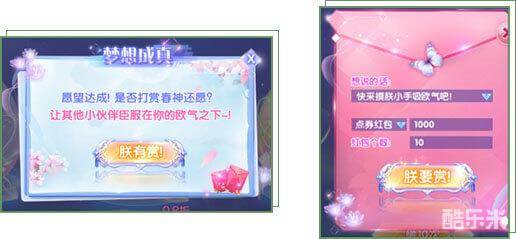 当获得许愿的奖励时,将会弹出梦想成真窗口,点击“朕有赏”按钮即会打开红包界面,