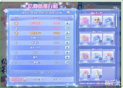 (1金币=1信仰值;1000点券=1信仰值)转化为信仰值,累计信仰值可参与信仰值排行榜。