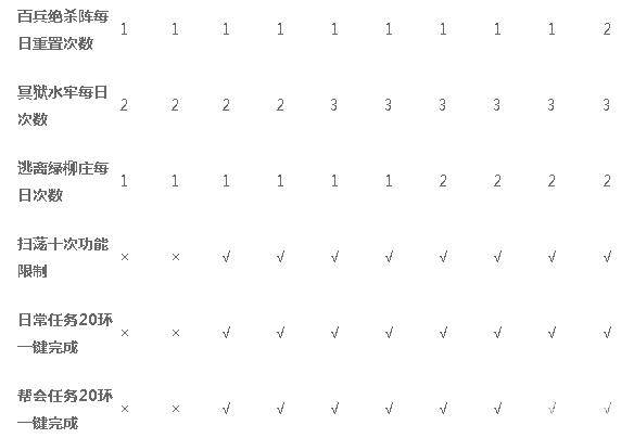 在游戏中开通VIP,可获得专属的游戏特权与特殊奖励。在VIP系统中,设定存在多个VIP等级,每个VIP等级可获得的优惠及奖励都不同,玩家通过“累积充值金额”来达到提升VIP等级,VIP等级越高,获得的特权种类越多。