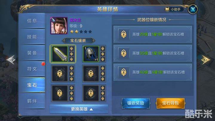 各位主君的王朝建设到此时,英雄的等级、星级、阶级等属性必定已得到一定的提升,此时已经该考虑为英雄武器镶嵌宝石。