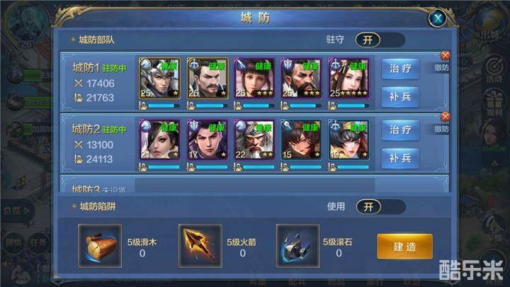 部队日常补兵、升阶自是不用说,关键是正常情况下,要留一个小分队在城中驻守。从几次遇袭的数据来看,虽然陷阱也能起到消灭敌军的作用,但杀敌数量来看,还是部队的杀伤力更为强悍,所以尽管驻守部队未必能击退敌人,也要让对手付出一些代价。当然,主君们也可以反其道而行之,将队伍派出去,留一空城,避免更多不必要的损失,毕竟训练士兵也是一笔不小的开销。