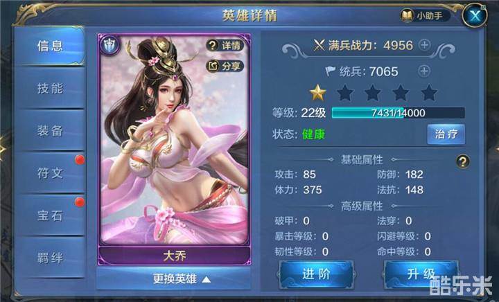 3.大乔:解锁技能需要升阶,英雄碎片获得渠道暗影之门万妖池-1(精英)或点将台处。