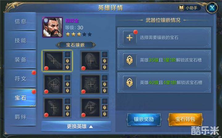 由技能介绍可见,大乔是利用友军承受伤害量提升自己的攻击力,同时又带有智能选择抗性较低的敌方施展控制并且造成小爆发型输出的英雄。推荐宝石红玉、狮心石、尖晶石和黄玉。