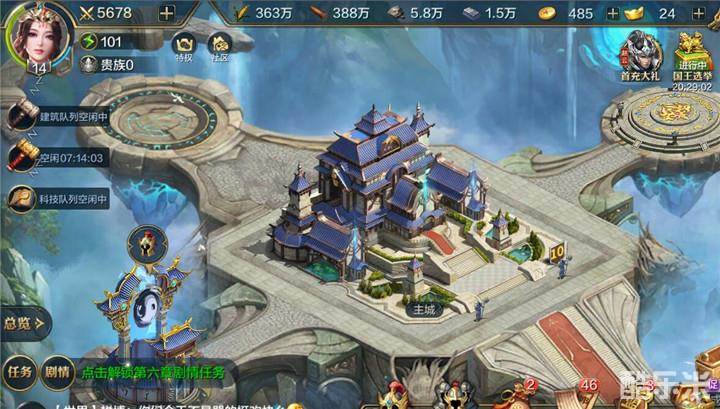 完整剧情第四章获得剧情奖励后,两个建筑队列优先升级主城前置需求建筑条件全部用加速卡秒升。当主城升级9级后,无需使用1小时加速卡,使用385金币马上完成即可。
