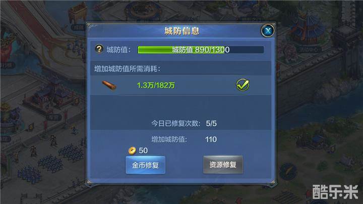 《我的王朝》是一款以国战为主的手游,玩家之间的战争自然十分激烈。当主君被敌人的军队攻打,且防守失败后,城墙就需要修复,第一次可以免费修复,之后可以使用木材资源修复,但这种方式是有次数限制的!五次之后,主君们就只能用金币修复了,这种情况很容易浪费宝贵的金币。所以玩家们最好努力提高军队的战斗力,抵挡住敌军的进攻哦。