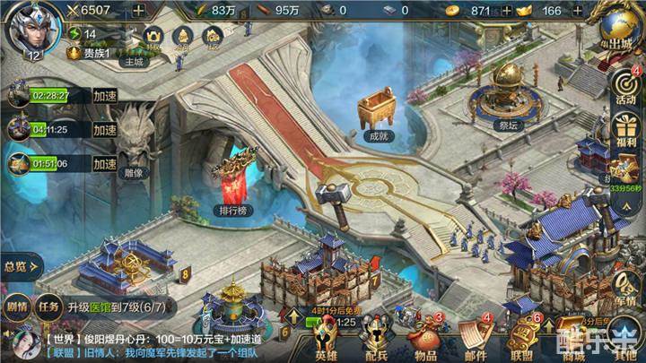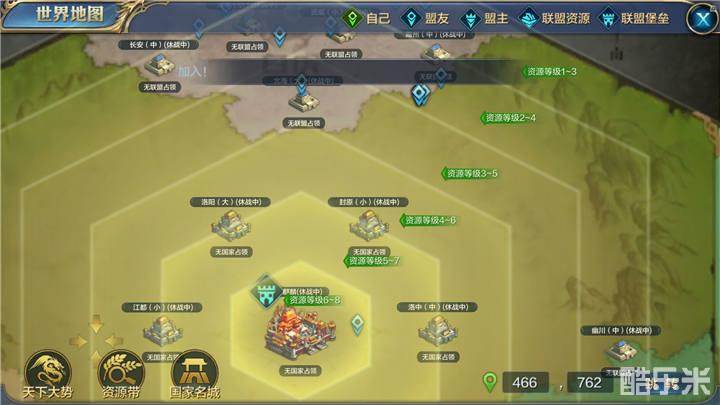 世界地图资源广:在这里说的资源可不仅仅是木材和粮食那么简单,在世界地图中会有相对的矿场来采集主要资源。在这之外,世界地图上还有很多遗迹和暗影城堡,探索和攻击后会得到丰厚的奖励,具体是什么奖励还待各位主君亲自去一探究竟。