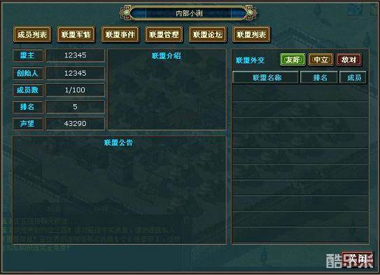 而联盟宣战则无需时间等待限制,由盟主或副盟主在“联盟外交”中添加“对立”关系,立即生效。宣战生效后,对方联盟会收到联盟事件,盟主会收到宣战报告。交战关系的联盟,所有成员长期处于战争状态。