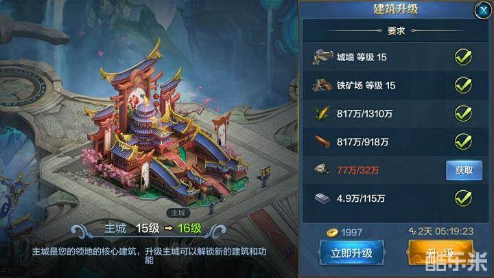纵然是佛系主君,但主城等级的提升绝对是不可或缺的。要知道在《我的王朝》中,资源种植等级是受到主城等级的限制的。如果佛系主君不想通过战争的手段获取资源,那么不妨只关注主城等级的提升,以此来提升种植地的等级哟!