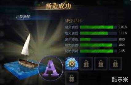 随机得到船只技能格数量以及随机的初始技能。根据初始值和技能情况,会有S~D的评价哦。