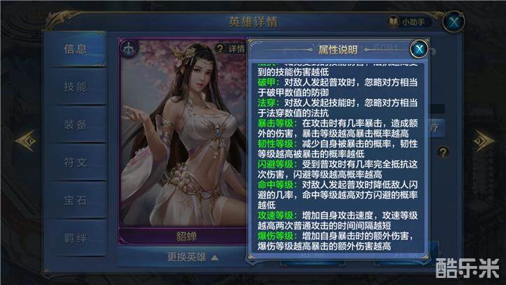护甲的第一个宝石槽能镶嵌狮心石(暴击)、金刚石(韧性)、猫眼石(闪避)、尖晶石(命中)四种,前期在资金有限的情况下,小臣建议主君在商城使用金币购置一些1级狮心石或猫眼石,根据英雄特性进行镶嵌,增加伤害或生存能力。