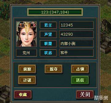 玩家可以在世界地图中查看每一格的信息,通过点击每一格实现进城、侦察、占领、抢掠等不同操作。所有进入游戏的玩家将被4399分布在世界地图中,格子之间的距离将影响玩家在运输、交易、出征等操作时实际花费的时间。