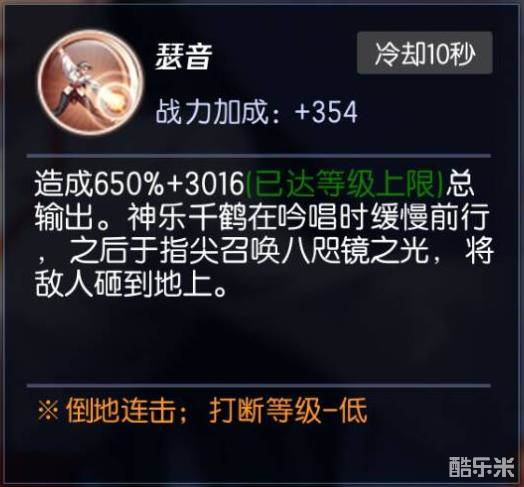 铮铮·改作为神乐千鹤的3技能,属于近身瞬间打击技能,能够对倒地攻击,更重要的是,该技能的打断等级为中(在被动加成下的才有),这意味着在硬刚上,神乐千鹤不怂很多格斗家。