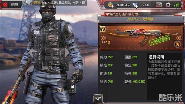 首先登场的是深受玩家追捧的AK47火麒麟,这把枪有着霸气的外表,金银相间的配色,在枪口处有着专属的浮雕,每一发子弹都像是从麒麟口中喷出的愤怒的火舌,单从面板数据来看,AK47英雄级武器都相差不大,除了有着微小的区别外,这是每一把的技能有所不同,但AK47英雄级全系都配备有近战刺刀,在伤害方面都足以一枪之地,经过测试,火麒麟最突出的特点就是弹道优化较好,无论是从子弹射出时射击的手感,还是弹道优秀的视觉效果,在今天要登场的枪械中都是最佳的,因此很对手感有要求的玩家,火麒麟是一个不错的选择。在特殊技能方面,火麒麟有一个强力的技能,那就是子弹伤害无距离衰减,因此在远距离上对敌人进行射击,仍能保持巨大的威力。另外,火麒麟的射速在AK家族中也名列前茅。